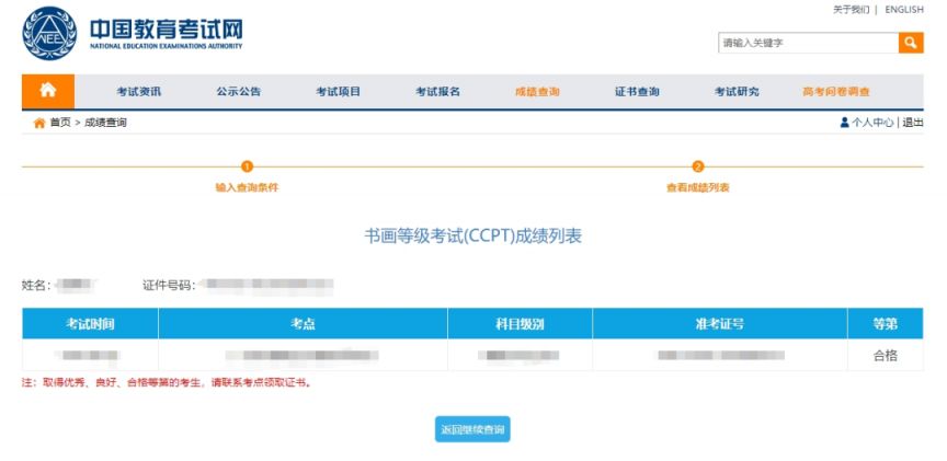 查询入口:中国教育考试网(www.neea.edu.cn)
