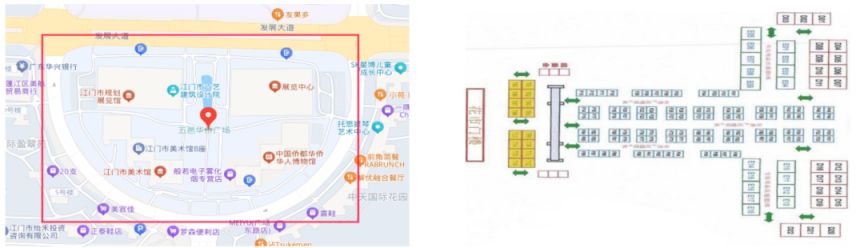五邑华侨广场位于环市街院士路与广场东路交界。2025年,江门五邑华侨广场迎春花市预计摊位150多个,有大型停车场,主要引进售卖新春节庆用品、年桔、年花和年货等的摊位,现场还设置多个网红打卡点,满足大家需求。