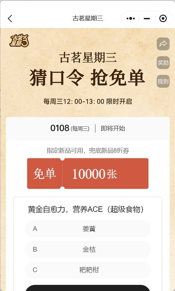 2、活动对象:猜口令活动仅限古茗茶饮小程序会员参与,未注册用户完成注册后即可参与活动。