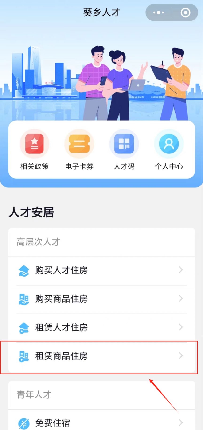 登录“葵乡人才”公众号,在“智慧人才”栏目页面选择需要申请的补贴类型。