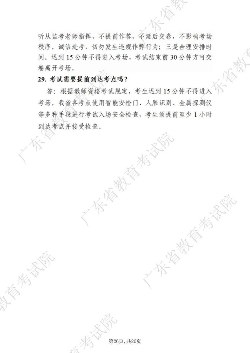 我省各中小学教师资格考试笔试考点均实行人脸识别、智能安检、金属探测等入场检测方式,考生打印准考证后,应及时查阅考点地址,合理规划路线,确保提前到达考点,并配合做好入场身份核验与相关检测。