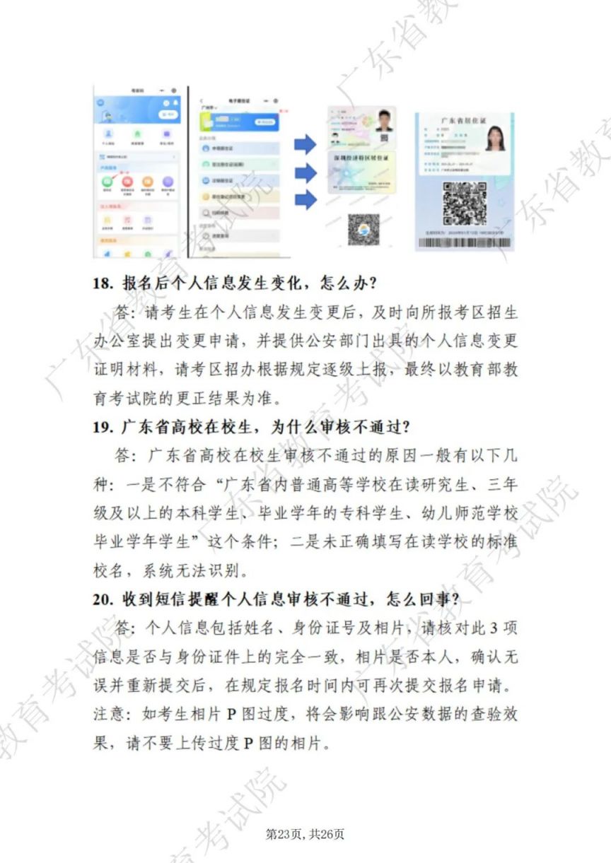 2.报名期间为广东省内高校毕业年级学生,考试时已经毕业的,以“非在校生”身份报名,其户籍、居住证等信息按报名期间的实际情况填写,并按要求选择相应考区。
