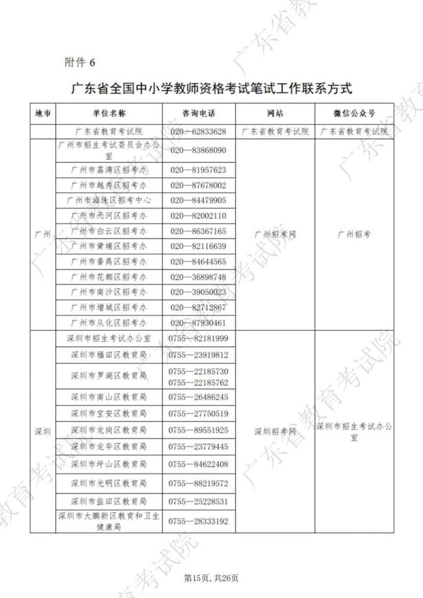 6.广东省全国中小学教师资格考试笔试工作联系方式