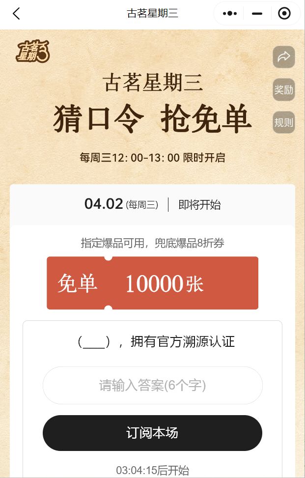 由于我无法实时获取具体品牌或公司的最新信息,包括古茗的特定活动,我无法直接告诉你4月2日揭晓的神秘口令是什么。