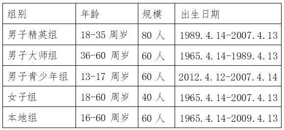 2.各组别严格按照年龄规定执行,不得弄虚作假。