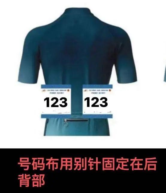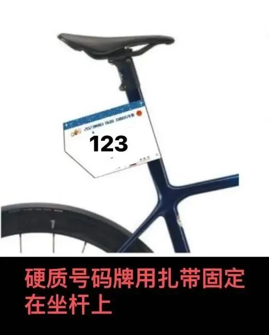 (三)参赛者须自备参赛车辆、装备与护具。所有参赛者比赛时都必须佩戴安全头盔、着骑行服,必须正确佩戴号码布/牌,不得裁剪,一经发现取消比赛资格。号码牌安装在座管,号码布安装于运动员两肋。