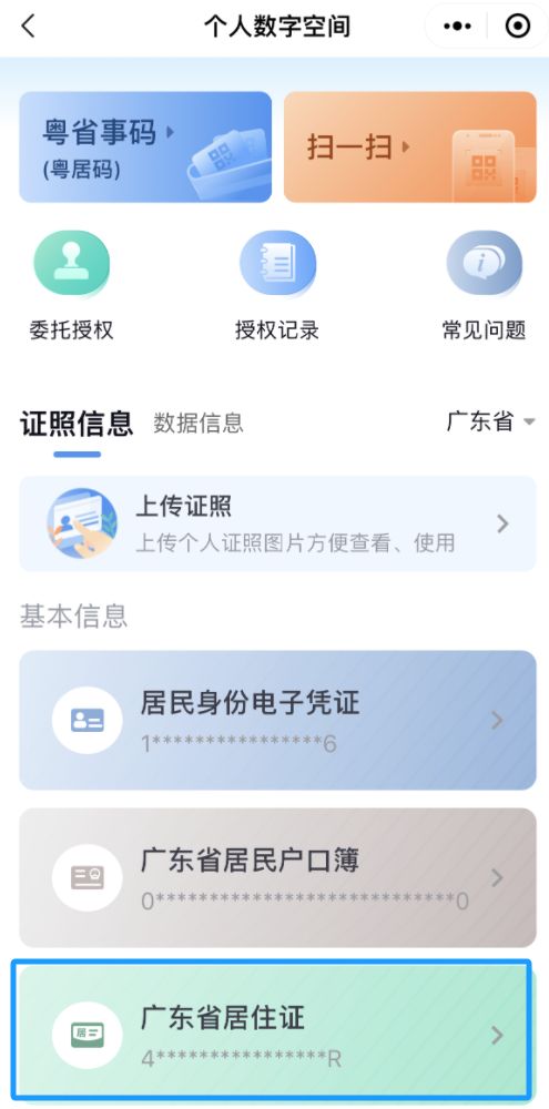 在粤居码的居住证主界面点击“亮证(码)”即可查看。